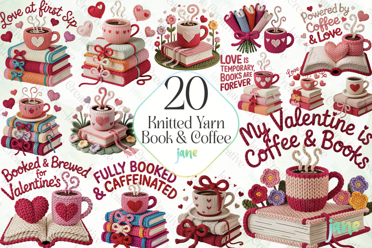 Similar Design Products to Knitted Yarn Book & Coffee Clipart Bundle