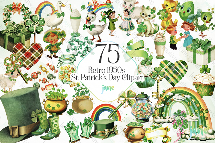 Retro 1950s St. Patrick’s Day Clipart example image 1