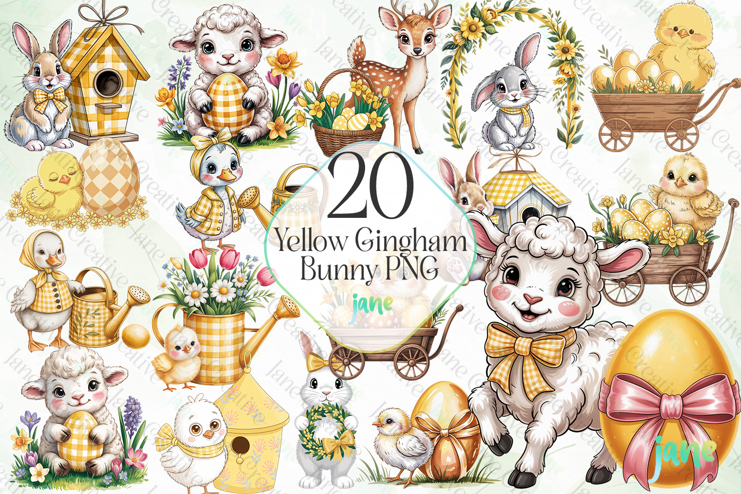 Watercolor Digital Instant Download Digital Design Sublimation Digital Prints Cute Design Sublimation Design Illustrations Art Yellow Gingham Bunny Png