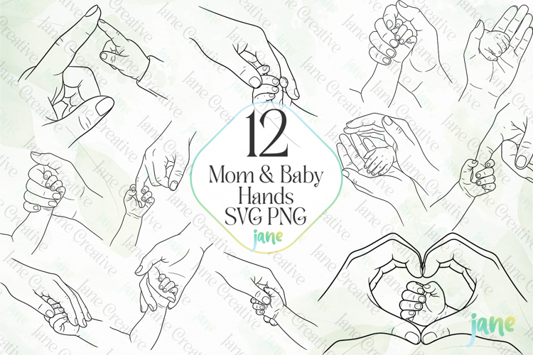 Mom And Baby Hands SVG PNG Clipart Bundle example image 1