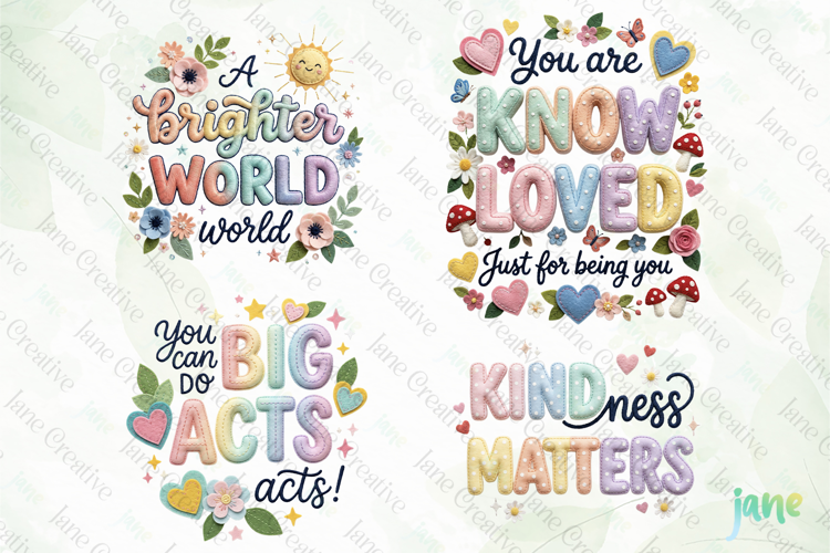 Positive Quote Embroidery Design Cute Puff Embroidery Typography Embroidered Lettering Png Bundle Pastel Motivational Quote Png Kawaii Typography Clipart Set Puffy Lettering Sublimation Bundle Cute Floral Quote Illustration Whimsical Embroidery Text Art Colorful Inspirational Saying Png Dream Big Kindness Quote Bundle