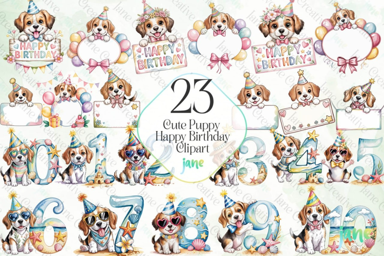 Watercolor Digital Instant Download Digital Design Sublimation Digital Prints Cute Design Sublimation Design Illustrations Art Cute Puppy Happy Birthday Clipart