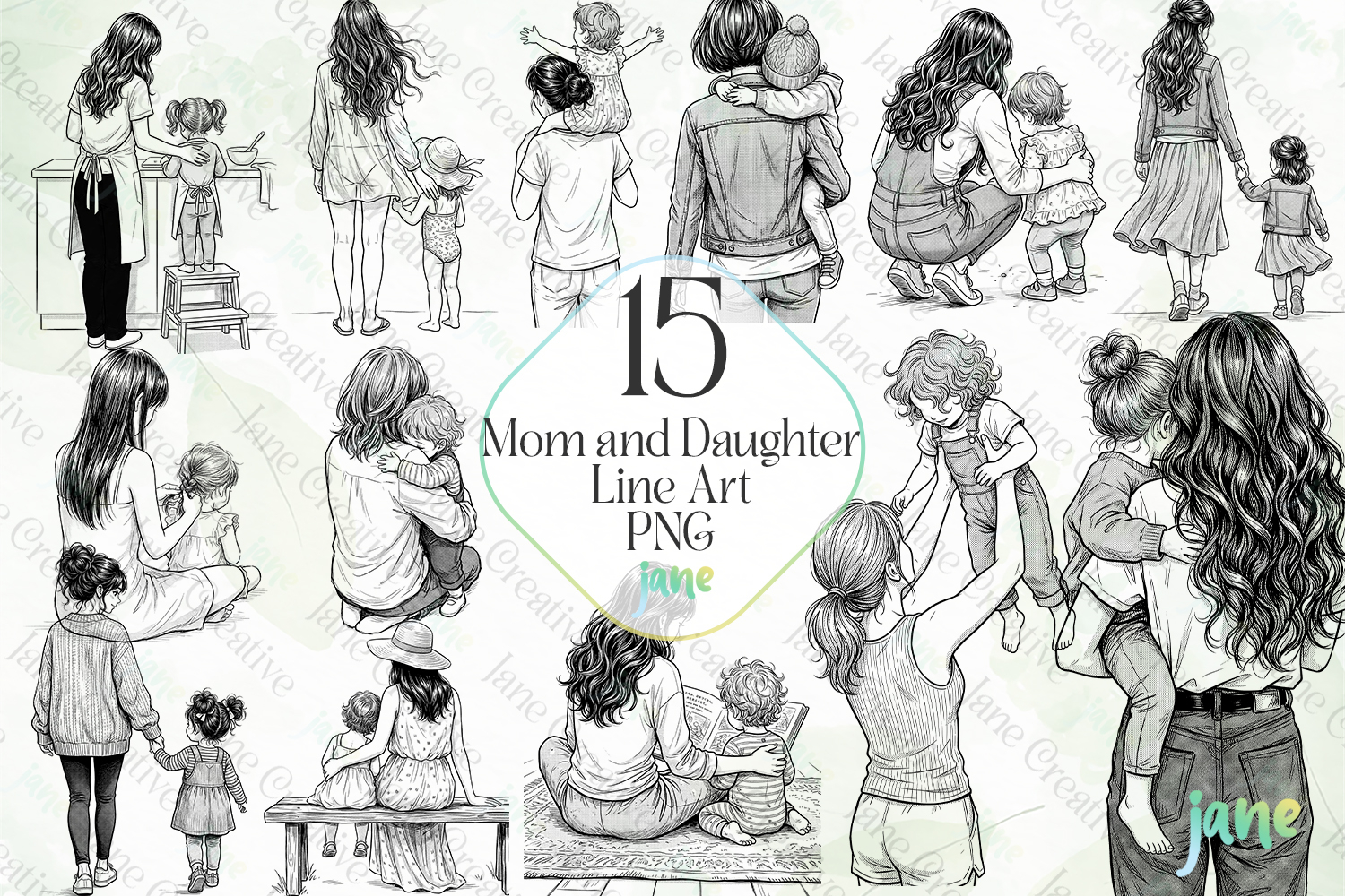 Mom and Daughter Line Art PNG Bundle