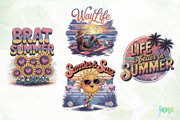 Watercolor Digital Instant Download Digital Design Sublimation Digital Prints Cute Design Sublimation Design Illustrations Art Summer Vibes Retro