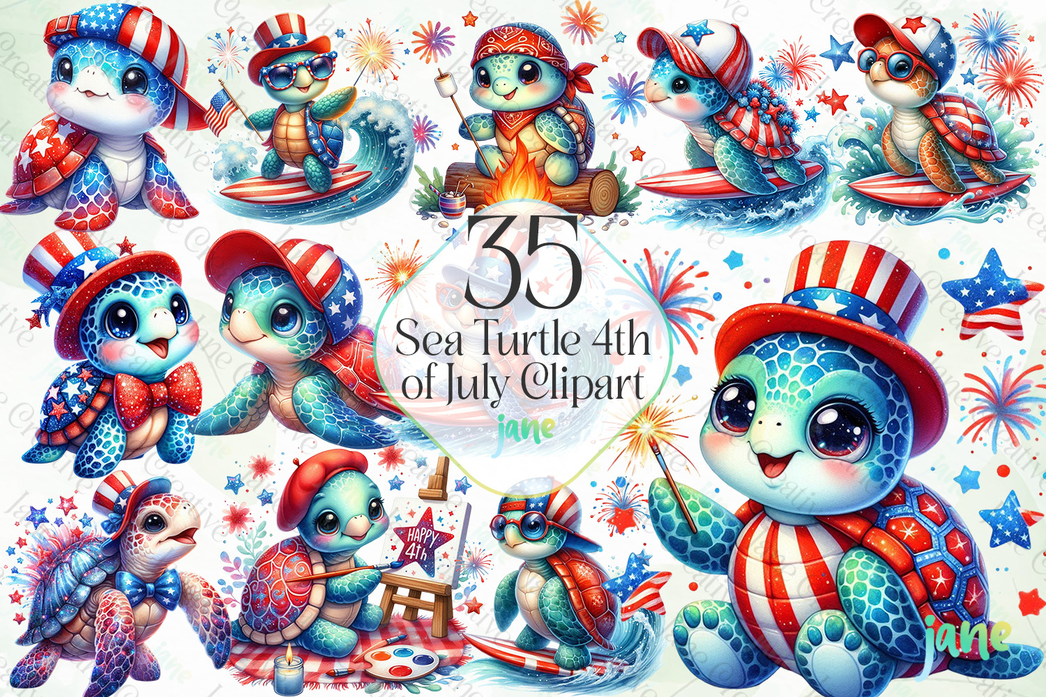 Watercolor Digital Instant Download Digital Design Sublimation Digital Prints Cute Design Sublimation Design Illustrations Art Sea Turtle 4th Of July Clipart
