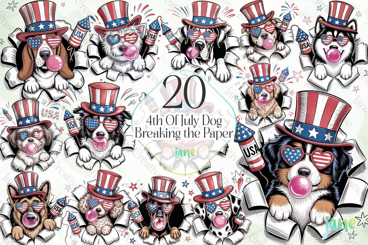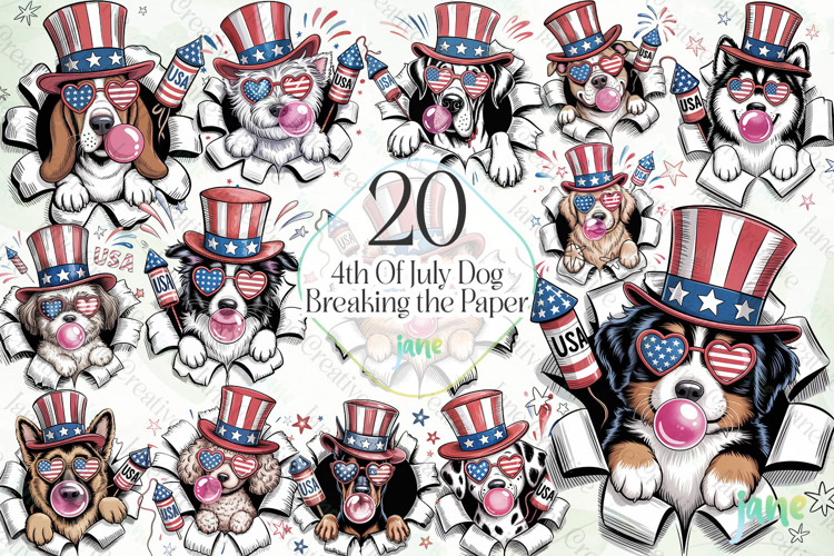 4th Of July Dog Breaking the Paper Bundle example image 1