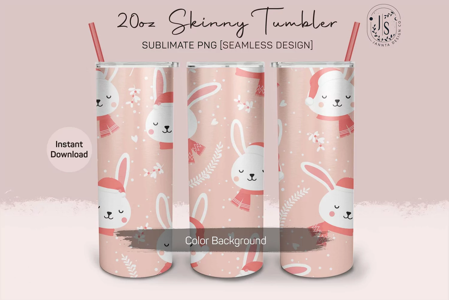 Animal Adorable 20oz Skinny Tumbler Sublimation Design, Christmas Bunny Pattern, Cute Rabbit Pattern, Winter Seamless Pattern, PNG Digital Download Template