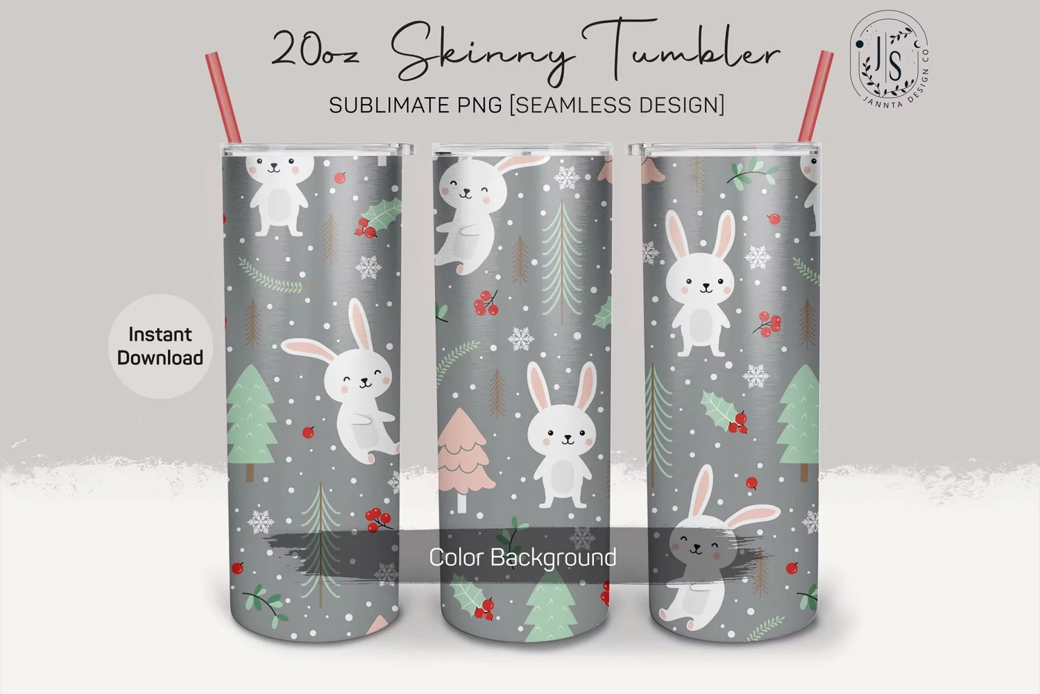 Animal Adorable 20oz Skinny Tumbler Sublimation Design, Christmas Bunny Pattern, Cute Rabbit Pattern, Winter Seamless Pattern, PNG Digital Download Template