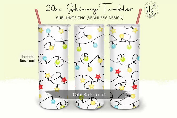 Christmas Garland Lights, 20oz Skinny Tumbler Sublimation Design, Happy New Year Holiday Pattern, Winter Seamless Pattern, PNG Digital Download Template
