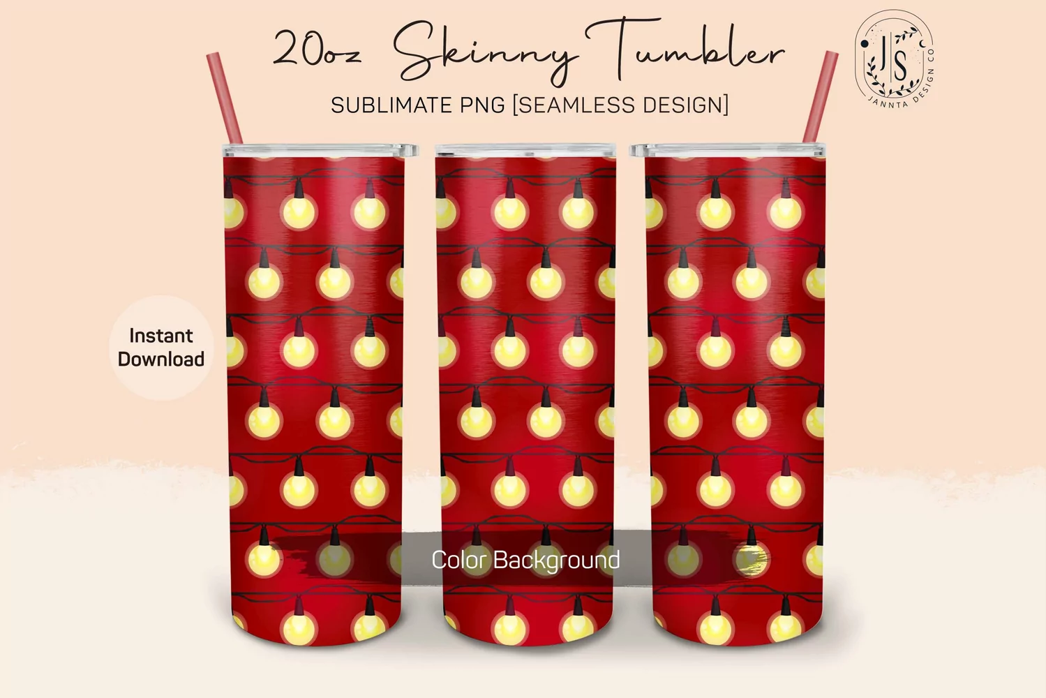 Christmas Garland Lights, 20oz Skinny Tumbler Sublimation Design, Happy New Year Holiday Pattern, Winter Seamless Pattern, PNG Digital Download Template