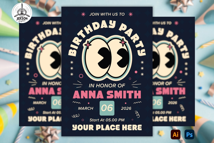 Birthday Party Flyer Template Design Poster SVG. Layered Photoshop and Vector by JeksonGraphics