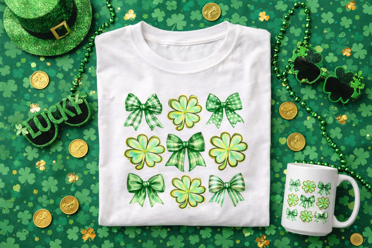 Similar Design Products to Coquette St Patrick’s Day Shamrock Bow PNG for Sublimation