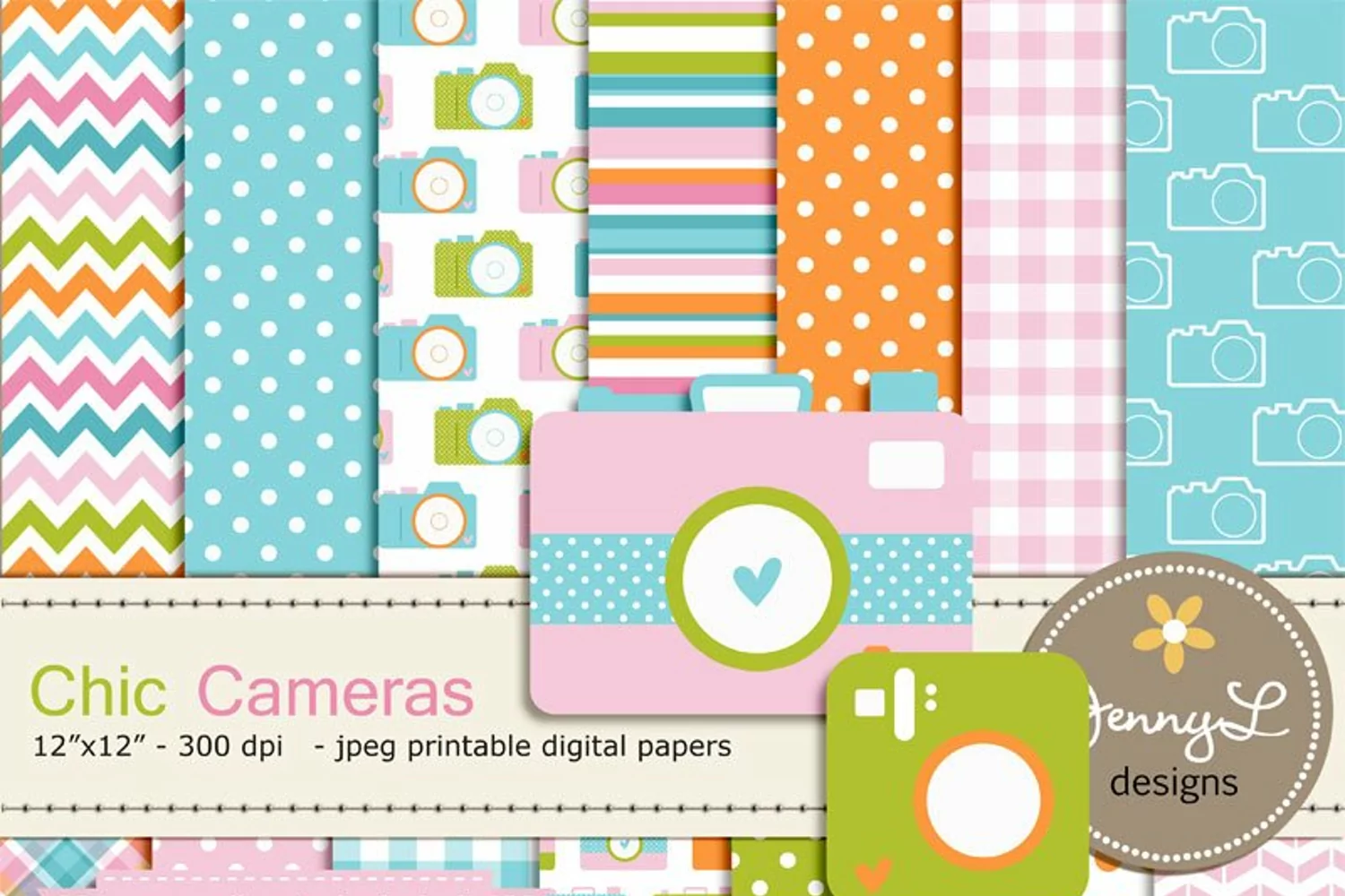 Photography Digital Paper Clipart Camera Printable Paper Digital Scrapbooking Background Paper Commercial Paper Digi Paper Chic Camera