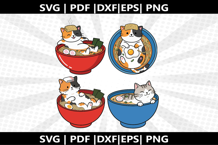 Svg Cute Silhouette Png Dxf Svg File Cricut File Kids Shirt Ramen Bath Cat