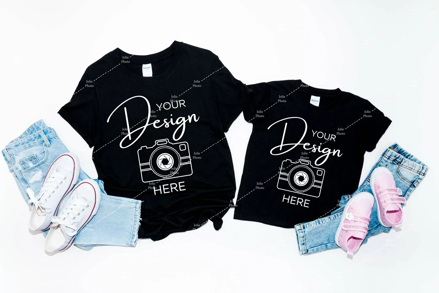 Gildan 64000 & 64500B Mockup Softstyle Black T-shirt Mock up example image 1
