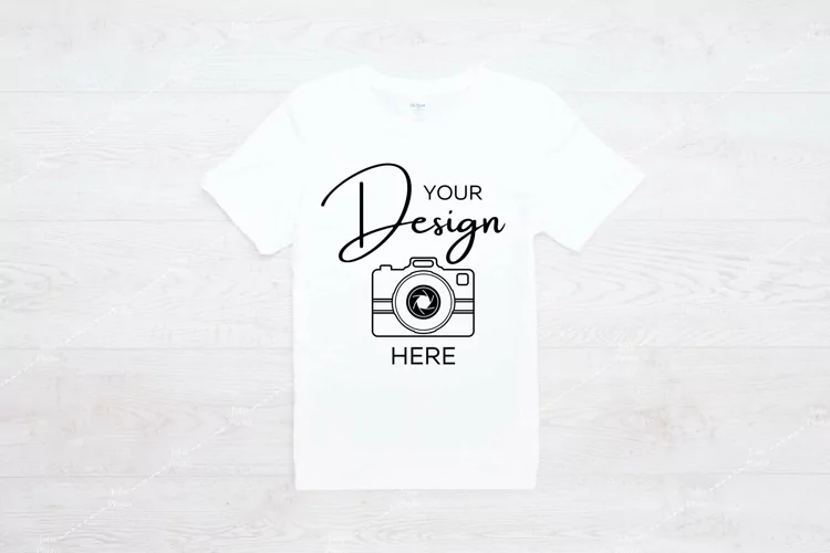 A simple Gildan 64000 Softstyle t-shirt photo mockup. This high-quality t-shirt stock photography featuring a Gildan 64000 Unisex Tee in white color can be used to display your designs, art or photography products for your online store, website or social media with just a few clicks. A huge time saver: simply add your design to the photo by using photo editing software.
