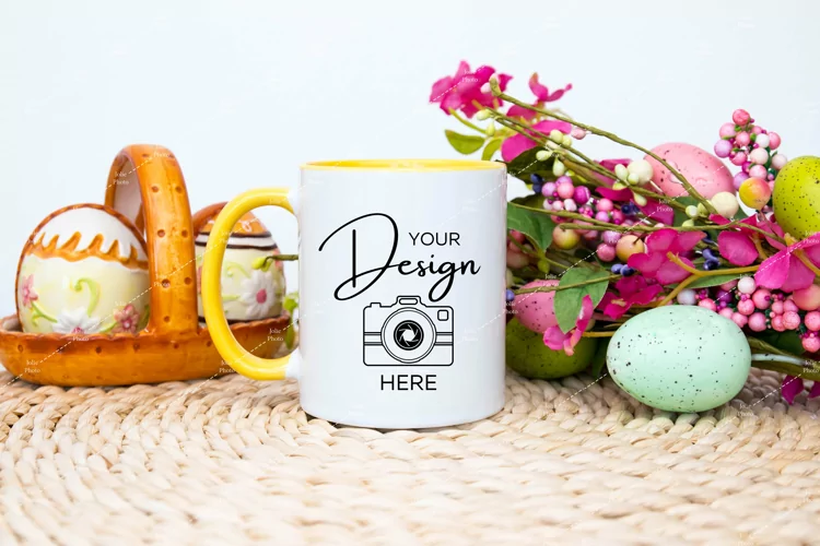 Easter Mug Mockup 11 Oz Blank White Coffee Cup Yellow Handle