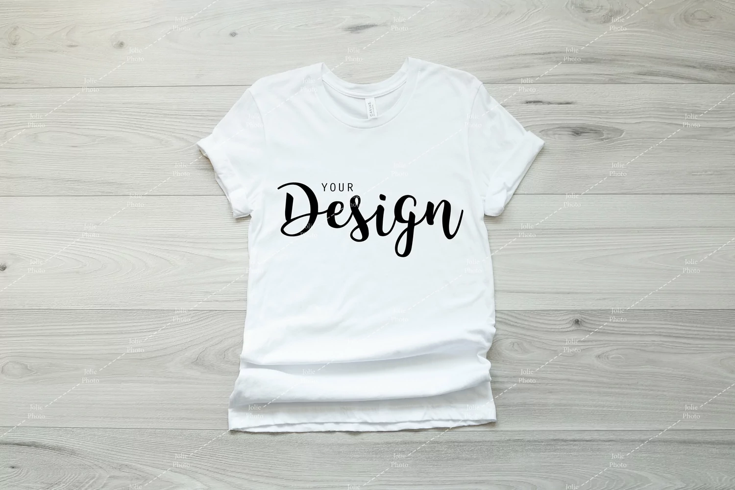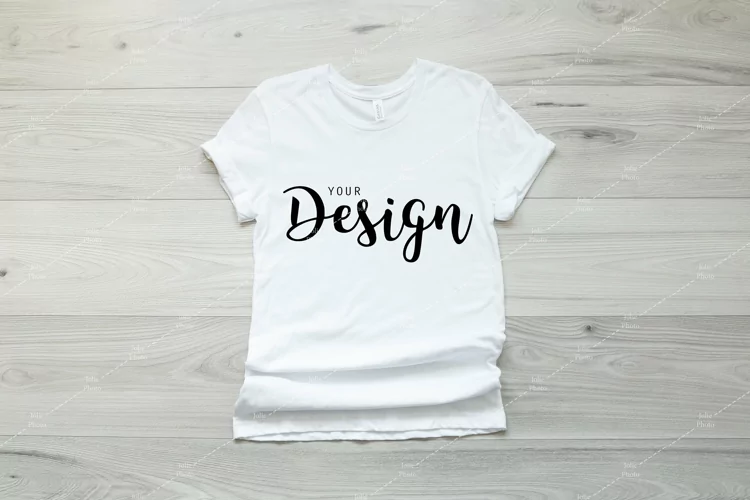 A simple Bella Canvas 3001 t-shirt photo mockup. This high-quality tshirt stock photography featuring a Bella Canvas Unisex Tee in white color can be used to display your designs, art or photography products for your online store, website or social media with just a few clicks. A huge time saver: simply add your design to the photo by using photo editing software.