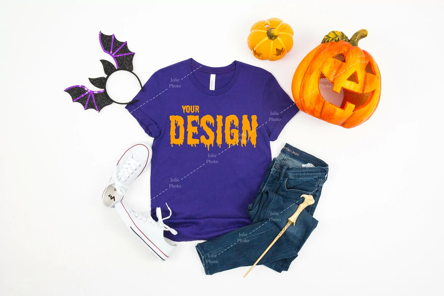Bella Canvas 3001 Team Purple T-shirt Mockup for Halloween