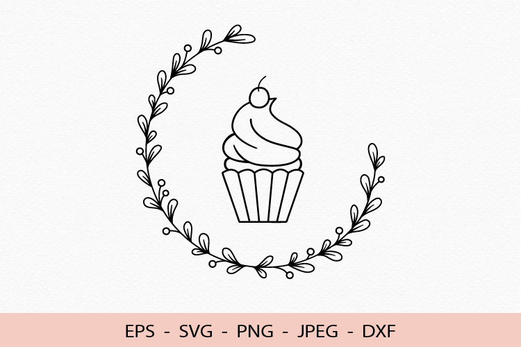 Cupcake SVG Wreath Logo For Cricut Cut File Bakery Round PNG