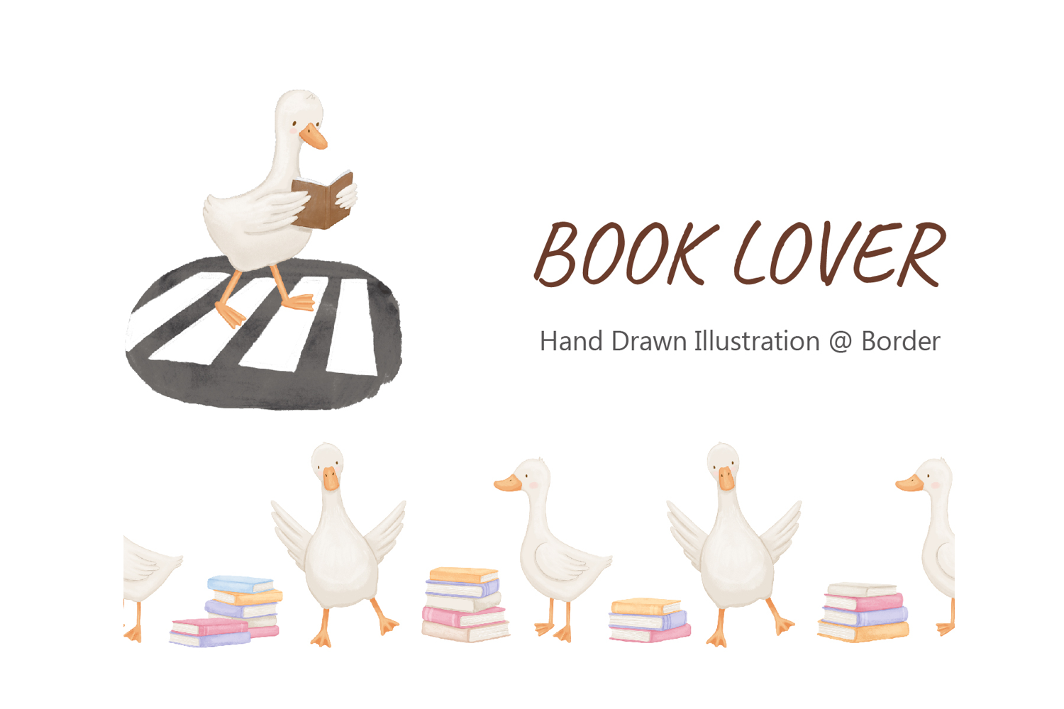 Similar Design Products to Goose Reading Book Clipart Watercolor Seamless Border