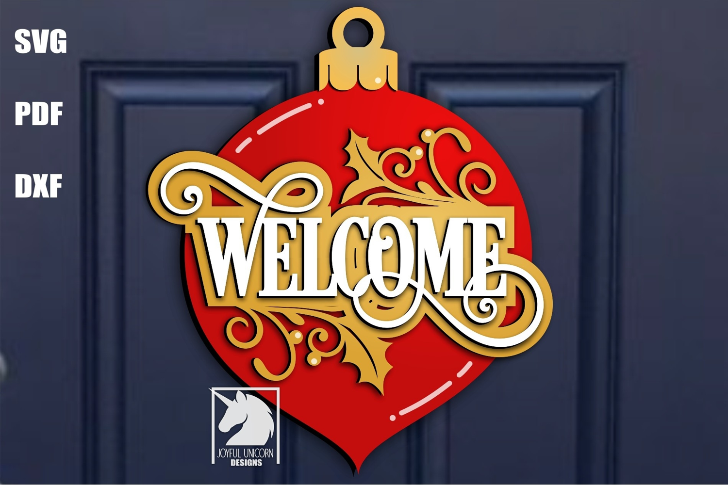 Christmas Ball Welcome Sign SVG | Winter Holiday Sign DXF example image 1