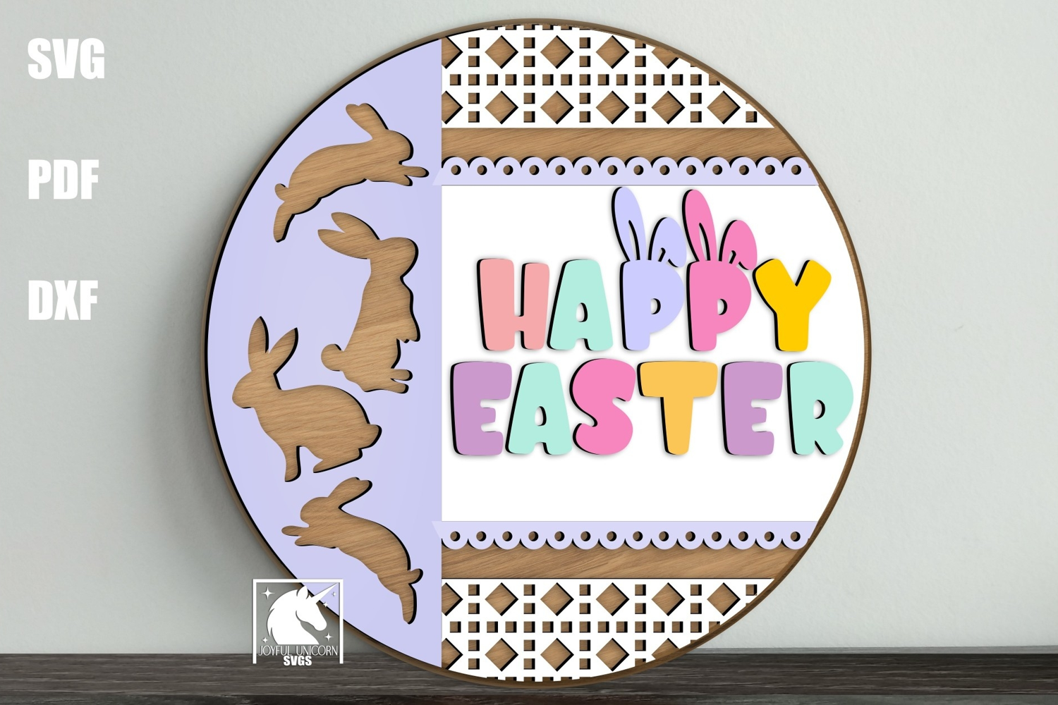 Happy Easter Door Hanger SVG | Easter Bunny Round Sign SVG