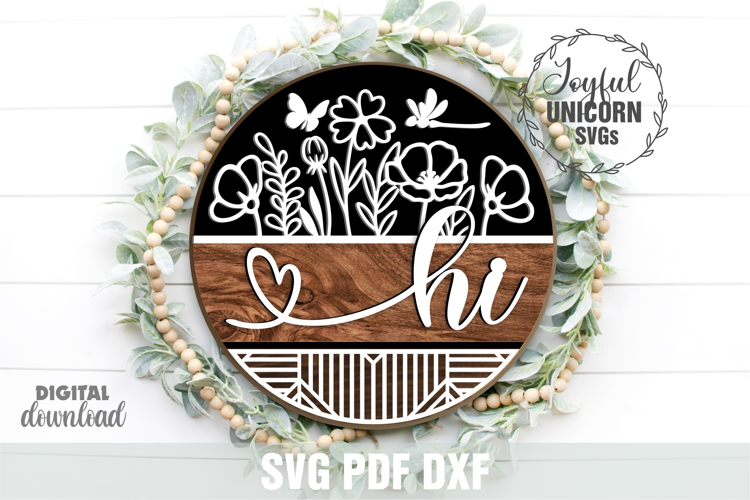 Hi Wildflower Welcome Sign SVG | Geometric Pattern Door Sign