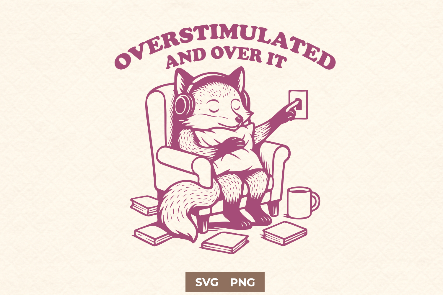 Sometimes, the world is just too much. This relatable “Overstimulated and Over It” digital design captures that perfect “I’m done” vibe with a cozy fox, headphones on, books everywhere, and the lights going off. A soft and funny tribute to self-care, overstimulation awareness, and quiet time. Ideal for introverts, HSPs, and those who just want peace.