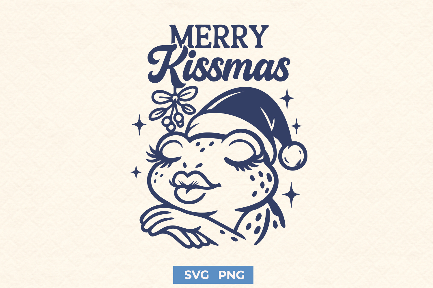 Merry Kissmas SVG PNG | Cute Funny Frog Christmas Cut File example image 1