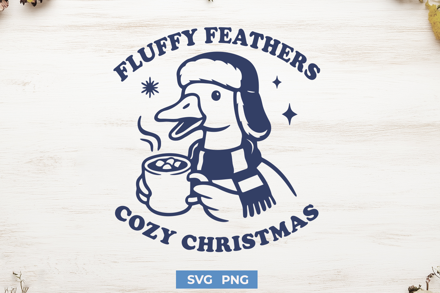 Fluffy Feathers Cozy Christmas SVG, Cute Goose Holiday Print