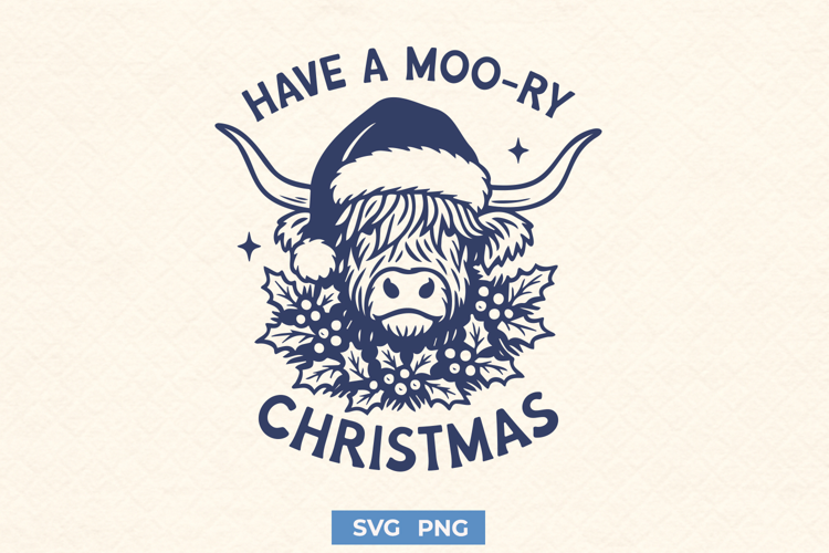 Have a Moo-ry Christmas SVG PNG | Highland Cow Xmas Design