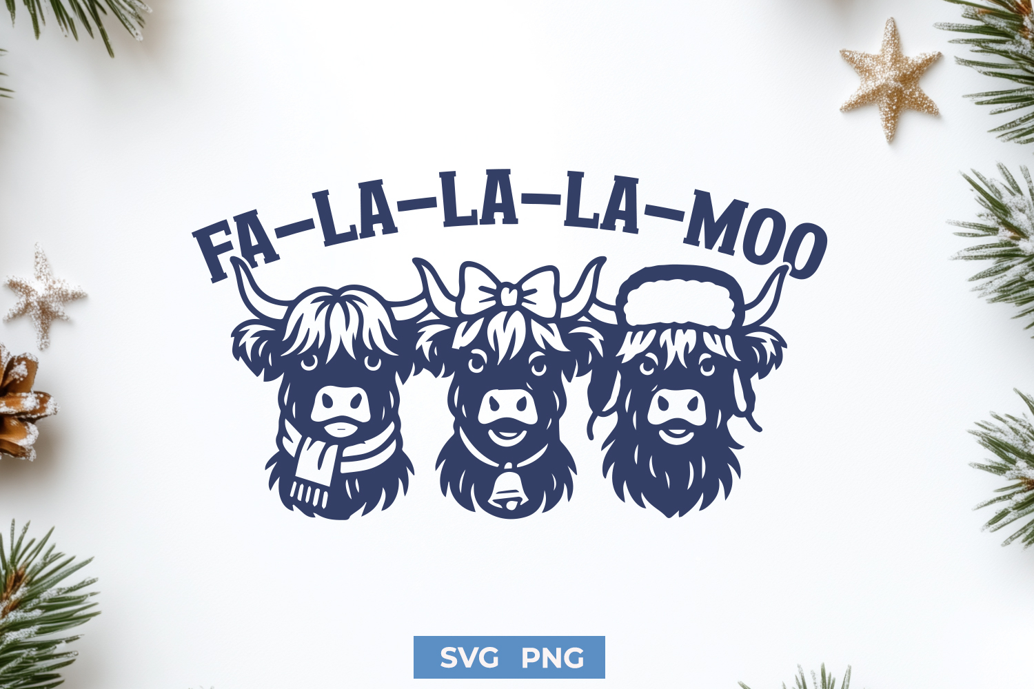 Fa La La La Moo SVG PNG, Funny Highland Cow Christmas Design