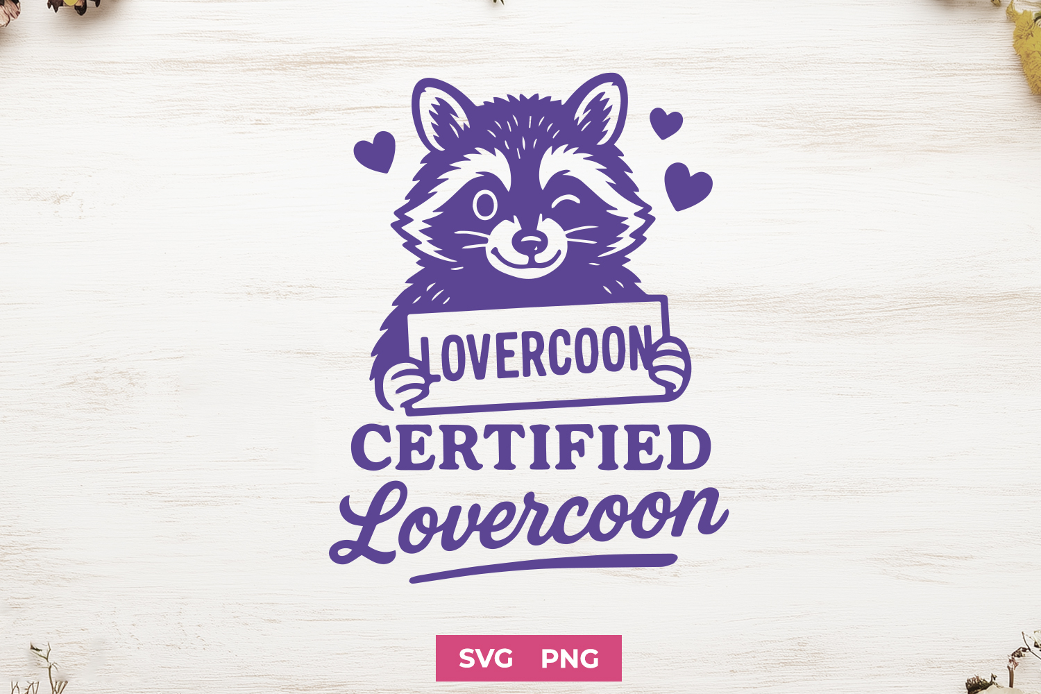 Certified Lovercoon SVG PNG, Funny Raccoon Love Quote Design