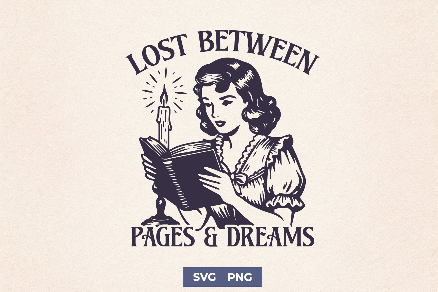 This Lost Between Pages and Dreams SVG captures the cozy magic of reading.