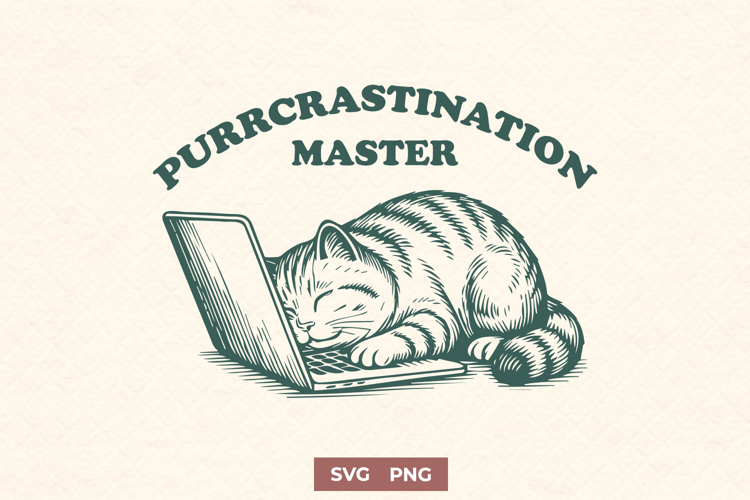 Purrcrastination Master Cat SVG PNG, Funny Lazy Cat Design