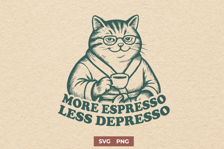 More Espresso Less Depresso Cat SVG Funny Coffee Cat Clipart