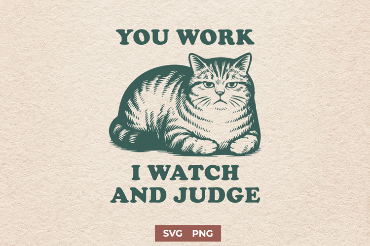 You Work I Watch and Judge Cat SVG Funny Lazy Cat Clipart example image 1