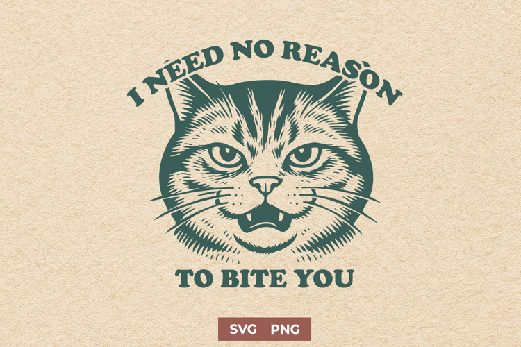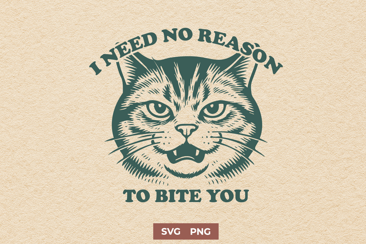 I Need No Reason to Bite You SVG Funny Angry Cat Sassy PNG