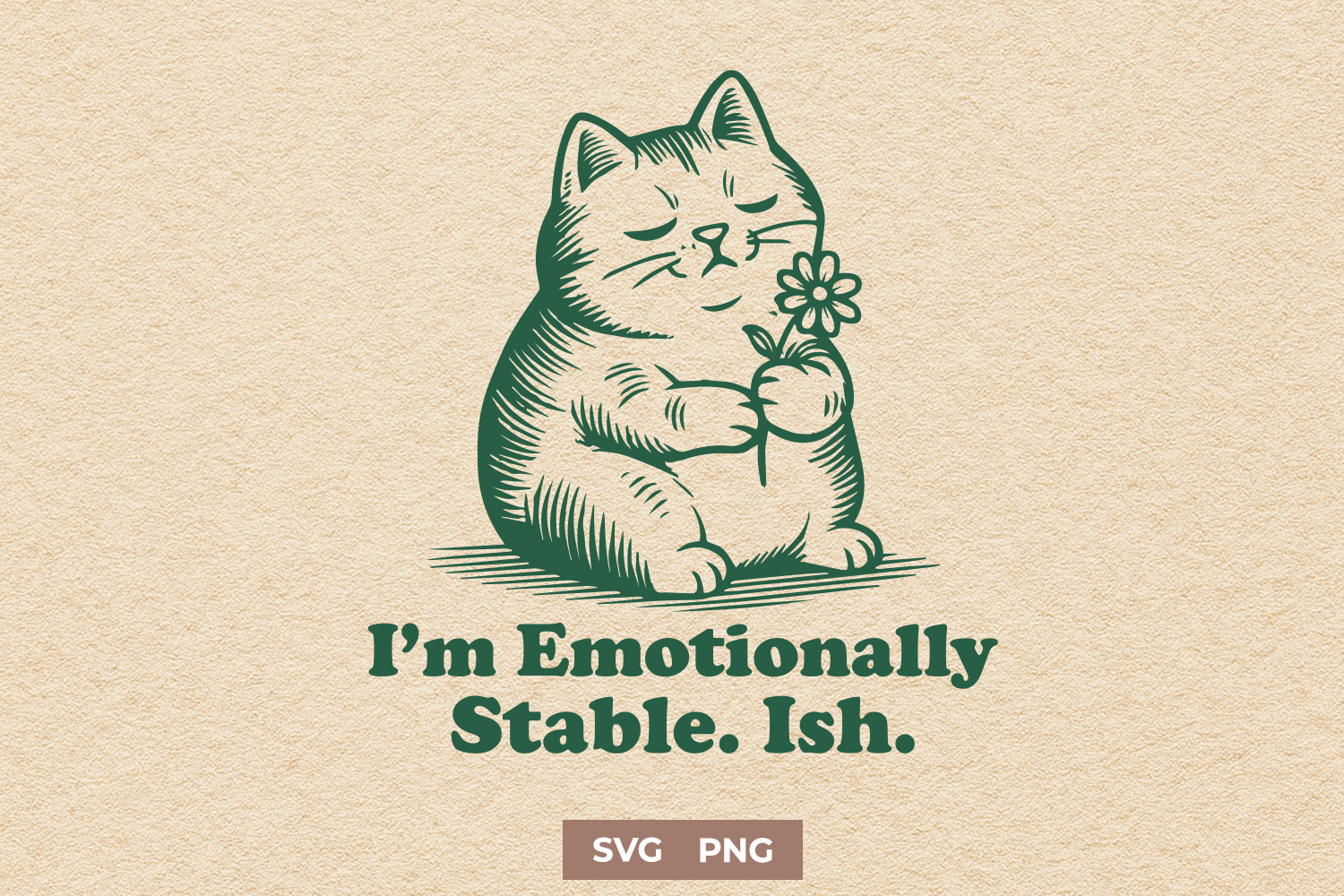 😹 Feeling kinda okay-ish today? This quirky “I’m Emotionally Stable. Ish.” design says what we're all thinking — with a flower and a fat cat for emotional support.