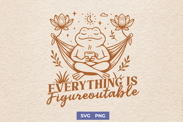 🧘 Stay zen with this adorable “Everything is Figureoutable” design! Featuring a smiling frog meditating in a hammock, this high-quality SVG/PNG file is perfect for mindfulness-themed crafts, mental health messages, and funny inspirational projects.