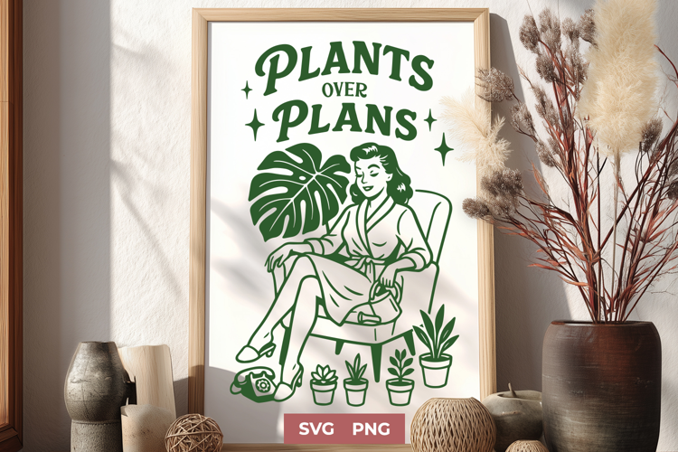 Plants Over Plans SVG Retro Plant Lady Clipart, Indoor Plant