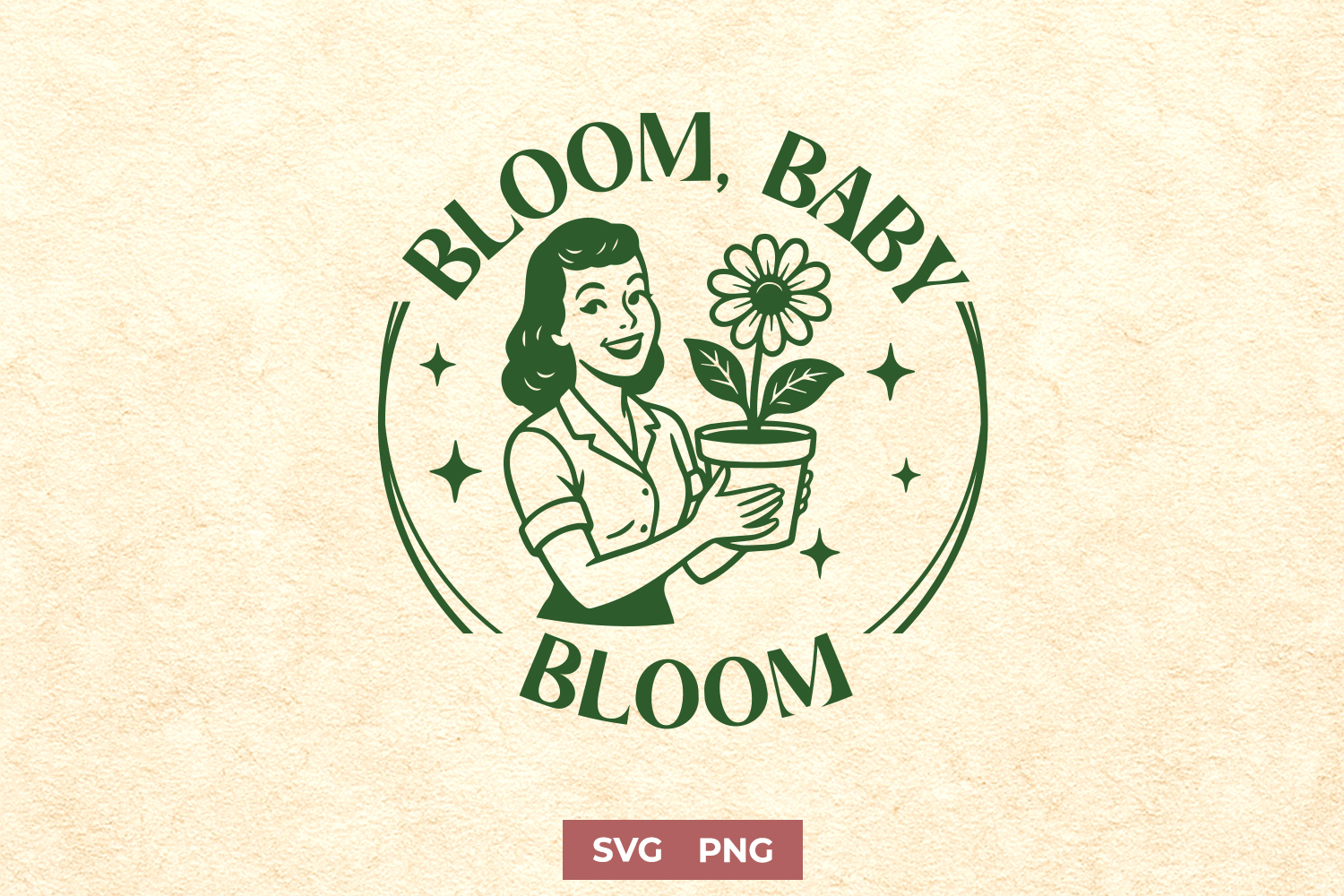 This Bloom Baby Bloom SVG is a lovely floral quote design featuring a daisy flower pot — perfect for plant lovers and gardeners. The botanical PNG works great with Cricut and Silhouette for shirts, mugs, signs and spring décor. Ideal for anyone searching for a daisy flower SVG, boho floral clipart, blooming flower art, or motivational botanical quote.