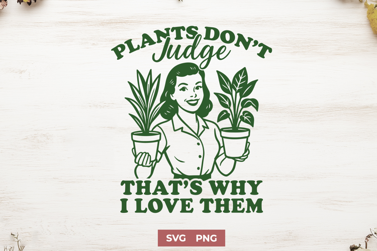 This funny plant lover SVG with a charming botanical quote is perfect for shirts, totes, mugs and home décor. The Plants Don’t Judge PNG works with Cricut and Silhouette and is ideal for plant mom gifts, greenery-themed crafts and humorous gardening projects. A great choice for anyone searching for a houseplant quote design, potted plant clipart, botanical humor graphic, or indoor plant SVG.
