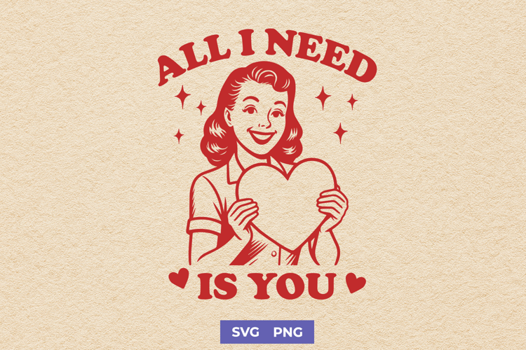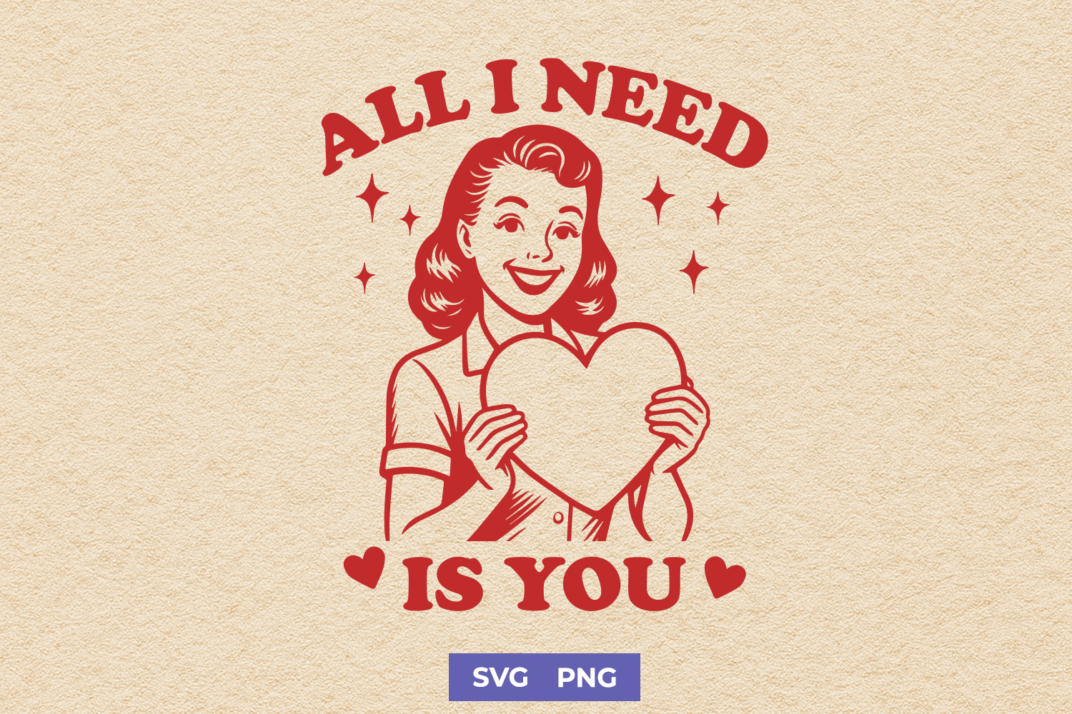 Similar Design Products to All I Need Is You SVG | Retro Valentine PNG | Romantic Quote