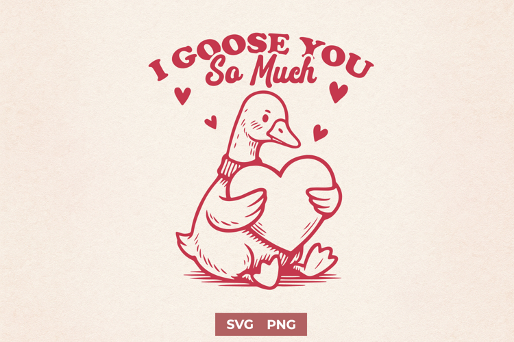 This cute goose SVG with a heart and the pun I Goose You So Much is a charming and funny Valentine design. Great as a love quote SVG, funny animal pun clipart, or a romantic goose illustration for crafting and gift projects. Both SVG and PNG formats ensure easy use across all major cutting machines and design software.
