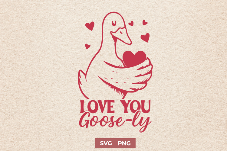 This cute goose SVG with the pun Love You Goose-ly makes a perfect valentine design, romantic pun clipart, or funny love quote SVG for crafting. The heart-hugging goose illustration adds charm to any project. Includes SVG and PNG for easy use across all major crafting tools.