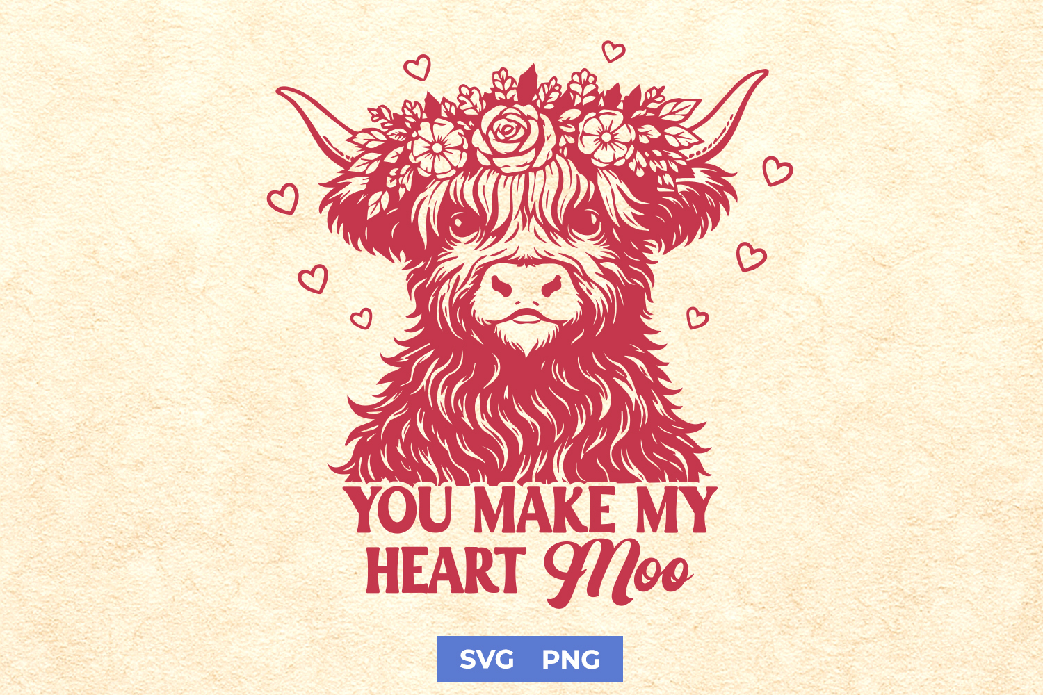 You Make My Heart Moo SVG | Cute Highland Cow Valentine PNG