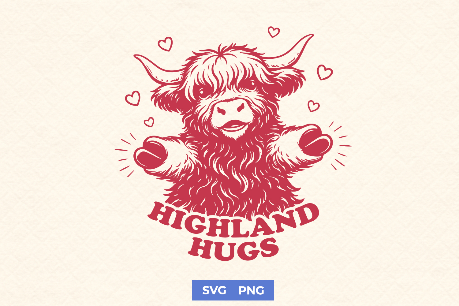 Featuring an irresistibly fluffy Highland cow with open arms and heart accents, this design is perfect for Valentine’s Day projects, friendship gifts, farmhouse décor, and cute animal lovers.