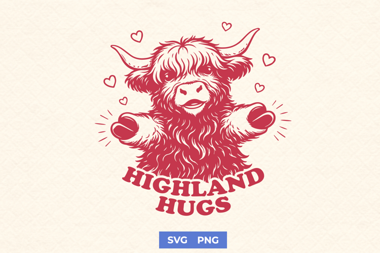 Highland Hugs SVG | Cute Highland Cow Valentine Farm PNG